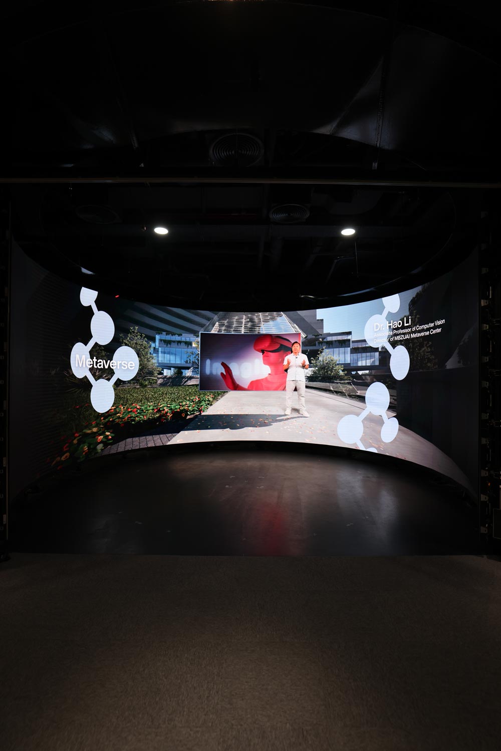 La instalación del observatorio de datos de 270 grados en el MBZUAI representa un logro técnico importante. Esta configuración innovadora permite una visualización inmersiva de la investigación en IA en tiempo real, facilitando presentaciones y experiencias visuales mejoradas para visitantes e investigadores por igual. Por ejemplo, durante la conferencia COP28, el Observatorio de Datos presentó complejos modelos y simulaciones de IA en tiempo real, mostrando las capacidades de investigación de MBZUAI a líderes y tomadores de decisiones globales. Esto no sólo elevó el perfil de MBZUAI sino que también demostró las aplicaciones prácticas de su investigación en escenarios del mundo real.